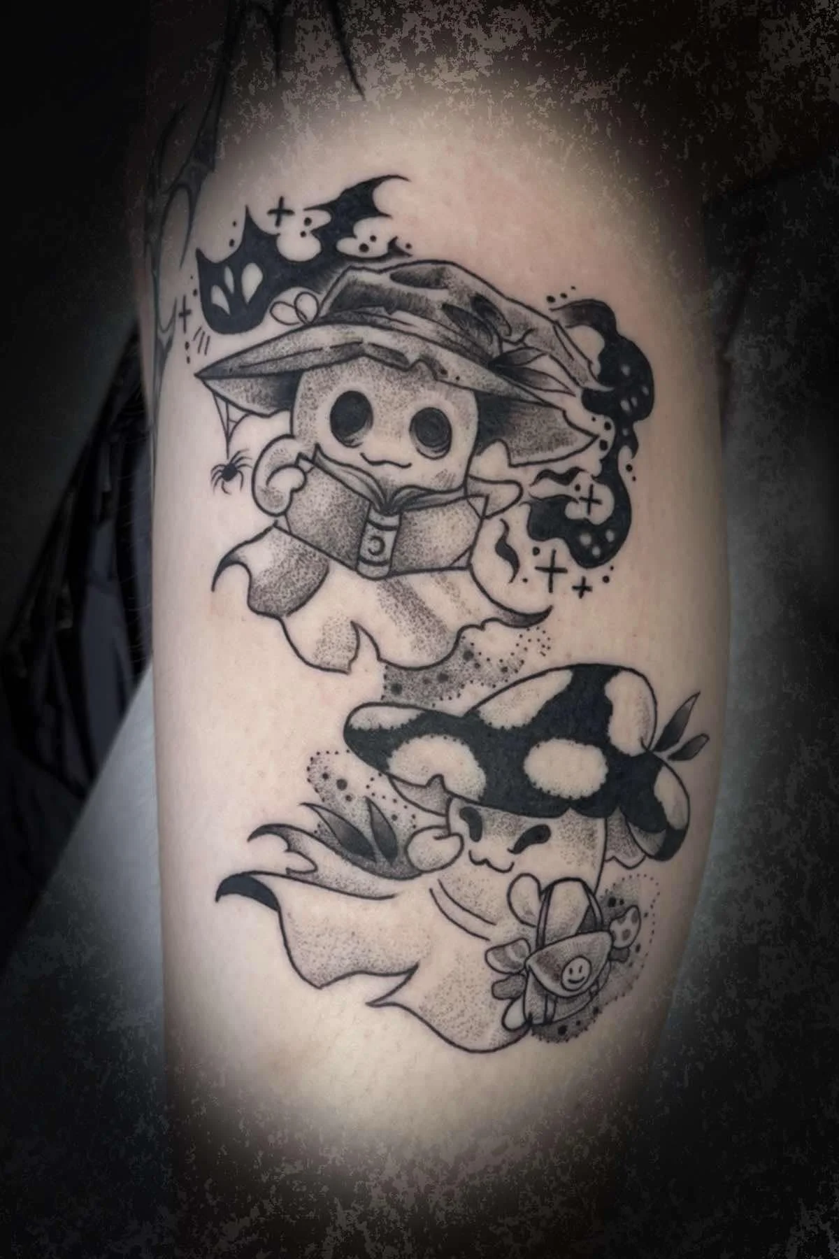 Meet Bodi (they/them), a talented and enthusiastic artist at ICONYX Tattoo. With an infectious energy and a passion for all things cute, dark, and creepy, Bodi is honing their craft and flexing their skills. Bodi completed their apprenticeship and continues to learn and work alongside the shop's head artist and owner, Mel, continuing their high standard of quality and professionalism.